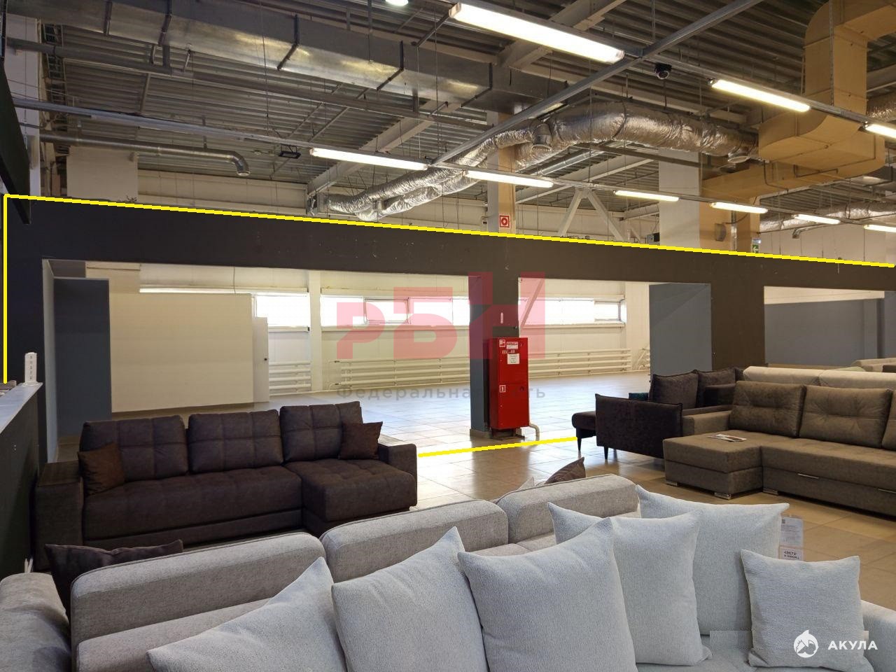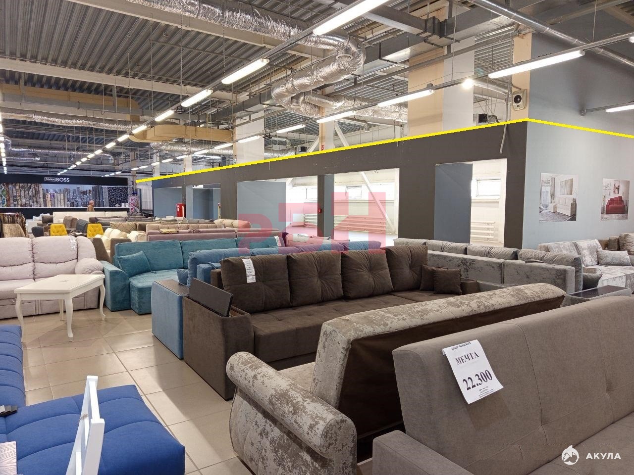 - готовая торговая площадь – удобная планировка, идеально подходит для магазинов мебели и товаров для интерьера, при необходимости перегородки могут быть демонтированы с образованием открытого пространства;